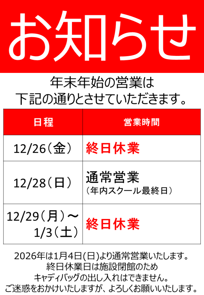 トップページ > ニュース > ニュース > お知らせ > 年末年始営業時間のお知らせ