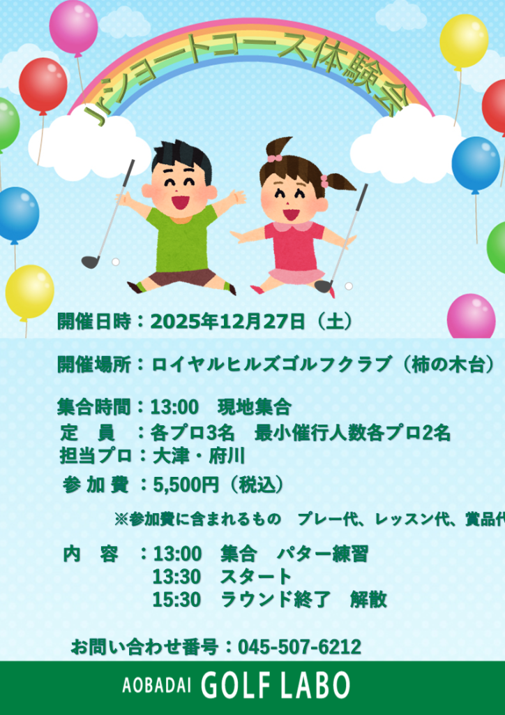 12/27(土) ジュニアショートコース体験会のお知らせ 【スクール生でない方もご参加頂けます】