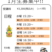 12/27(土)年内最後の振替レッスン会を開催!レッスンチケットが余っている方は是非ご参加ください。